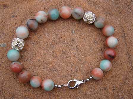 Bracelet sold separate-multi colored dyed jade 6 in, 8 mm beads, with silver spacers and findings.