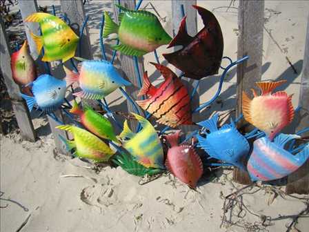 Features a very colorful 3D artistic metal wall art of fish as they swim across your walls.