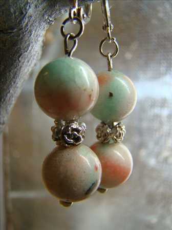 Earrings sold separate-multi colored dyed jade, 8 mm bead, drop earrings w/ 2 beads, silver hoops and silver spacers.